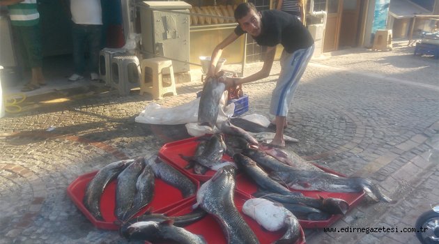 Edirne balık pazarında satışa sunulan dev yayın balığı görenleri şaşırtıyor.