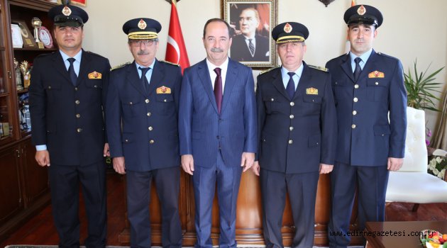 Edirne Belediyesi İtfaiye Müdürü Aydın Baskak, İtfaiye Haftası dolayısıyla, beraberindeki İtfaiye amirleri ile birlikte, Edirne Belediye Başkanı Recep Gürkan’ı makamında ziyaret etti. Baskak, Başkan Gürkan’a, Edirne İtfaiyesi’ni yeni bir binaya kavuşturduğu için teşekkürlerini sundu.