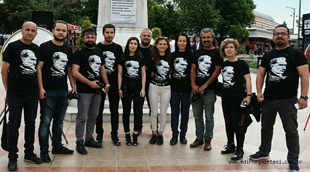 19 Mayıs Atatürk'ü Anma, Gençlik ve Spor Bayramı kapsamında Atatürk anıtında yapılan törende tek tip tişört giyerek anan gazeteciler, farkındalık yaratmak için gün boyunca Atatürk logolu tişörtlerle çalışacakları ifade edildi.Edirne’de 19 Mayıs Atatürk’ü Anma Gençlik ve Spor Bayramı kutlamaları sabah saat 10:00’da 25 Kasım Stadı önünde başladı. Stadın önünde oluşturulan kortejdekiler Edirne Belediye bandosu eşliğinde Türk bayrağı ve Atatürk posterleri taşıyarak Atatürk Anıtına yürüdü. Edirne Gençlik Hizmetleri ve Spor Müdürü Serhat Ocak'ın Atatürk Anıtı'na öğrencilerle birlikte çelenk sunmasının ardından saygı duruşu yapıldı ve İstiklal Marşı okundu. Halk oyunları gösteriyle program son buldu.Programın sonunda Gazeteci Seyide Esen yaptığı açıklamada, “Son günlerde Atatürk’ü hedef alan bazı sözler içimizi acıtıyor. Biz Edirne’de sahada görev yapan yerel basın görevlileri olarak bu gün bir farkındalık yaratalım dedik. Hepimiz aynı tişörtleri giydik. Atatürk her zaman kalbimizde” dedi.Gazeteci Tamer Yavuz, yerel basın çalışanları olarak farkındalık yaratmak istediklerini belirterek bayramın bir diğer adının Atatürk’ü Anma Bayramı olduğunu ve haberlerinde Atatürk’ün fikirlerini yaşatacaklarını söyledi.Gazeteci Olgay Güler ise, “Bir nebze sağduyu yarattıysak bize ne mutlu. Umarız gerekli mesajı vermişizdir diyoruz. Basın Atatürk’ün her zaman sahibi ve yanında olacaktır” dedi.