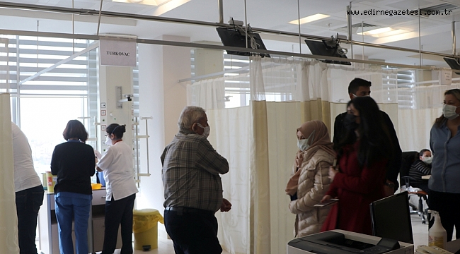 Edirne Sultan 1. Murat Devlet Hastanesinde, yerli aşı TURKOVAC'ın uygulanmasına başlandı. Vatandaşlar, TURKOVAC'a yoğun ilgi gösteriyor.