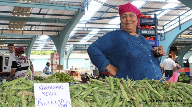 Edirne’de bezelye, kabak ve biber gibi ürünler şu dönemde tarlalardan tezgahlara taşınıyor. Yakın bir dönemde de karpuz ve kavunun da tezgahlarda yerini alması bekleniyor.Pazarcı Sabriye Nekrita, “Yerli ürünlerin pazarda satışa çıkması yaklaşık 1 hafta oluyor. Yerli ürünler çıkınca vatandaşın ilgisi artıyor. Yerli ürün fiyatı hem uygun oluyor, hem de daha ilgi olunca biz de sürümden kazanıyoruz” dedi.Pazarcı Orhan Göcen, “Yerli olarak kabak, salatalık var, biber var. Biberin fiyatı 3 Lira, biberlerde randıman yok, dolu yağışları olumsuz olarak etkiledi. Bu da fiyata ve verime yansıdı. Karaağaç’ın bezelyesi 10 günde bitti. vatandaşlar yerli ürünlere ilgi gösteriyor. Ama haftaya daha da artar, fiyatlar genelde düşük” şeklinde konuştu.PAZARCI ESNAFININ ETİKETLERİEdirne’de pazarcı esnafının etiketlerindeki ürün isimleri ve fiyatlarındaki yazım hataları dikkat çekti.Edirne halkının konuşmasında (H) harfini yutması, tezgahlarda bulunan fiyat etiketlerinin yazılarına da yansıdığı görüldü. Pazarda fiyatların yanı sıra etiket yazıları da büyük dikkat çekiyor.