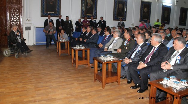 Karayolu Trafik Haftası kutlamaları kapsamında Edirne Halk Eğitim Merkezi’nde düzenlenen törende kaza sonucu tekerlekli sandalyeye mahkum kalan Mehmet Abdu yaşadıklarını anlattı.