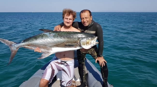 Edirneli esnaf Hasan Kutlu, Enez ilçesi Saros Körfezi’nde 40 kilogramlık akya adı verilen dev balığı zıpkınla vurdu.